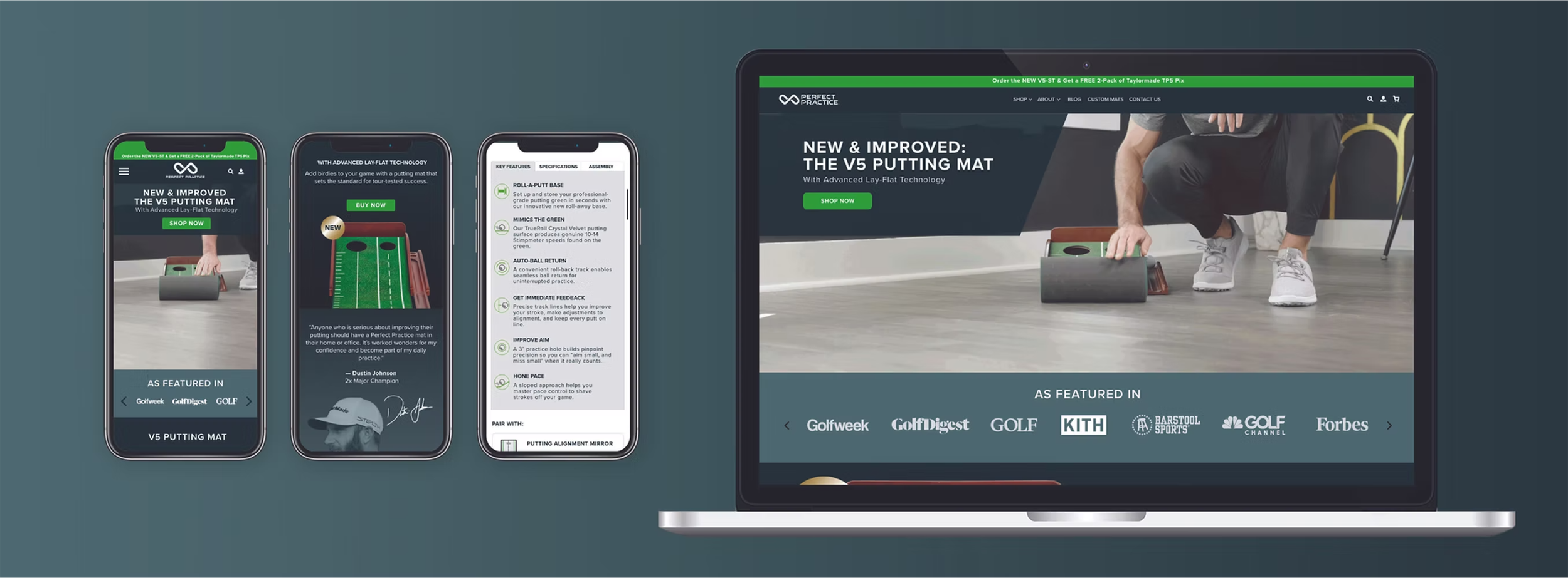 When the brand was introduced to our team, we were facing a slue of competitors with similar products and design. Our challenge was to elevate the brand perception, both on shelves and online, to enforce that Perfect Practice is the best putting mat on the market.